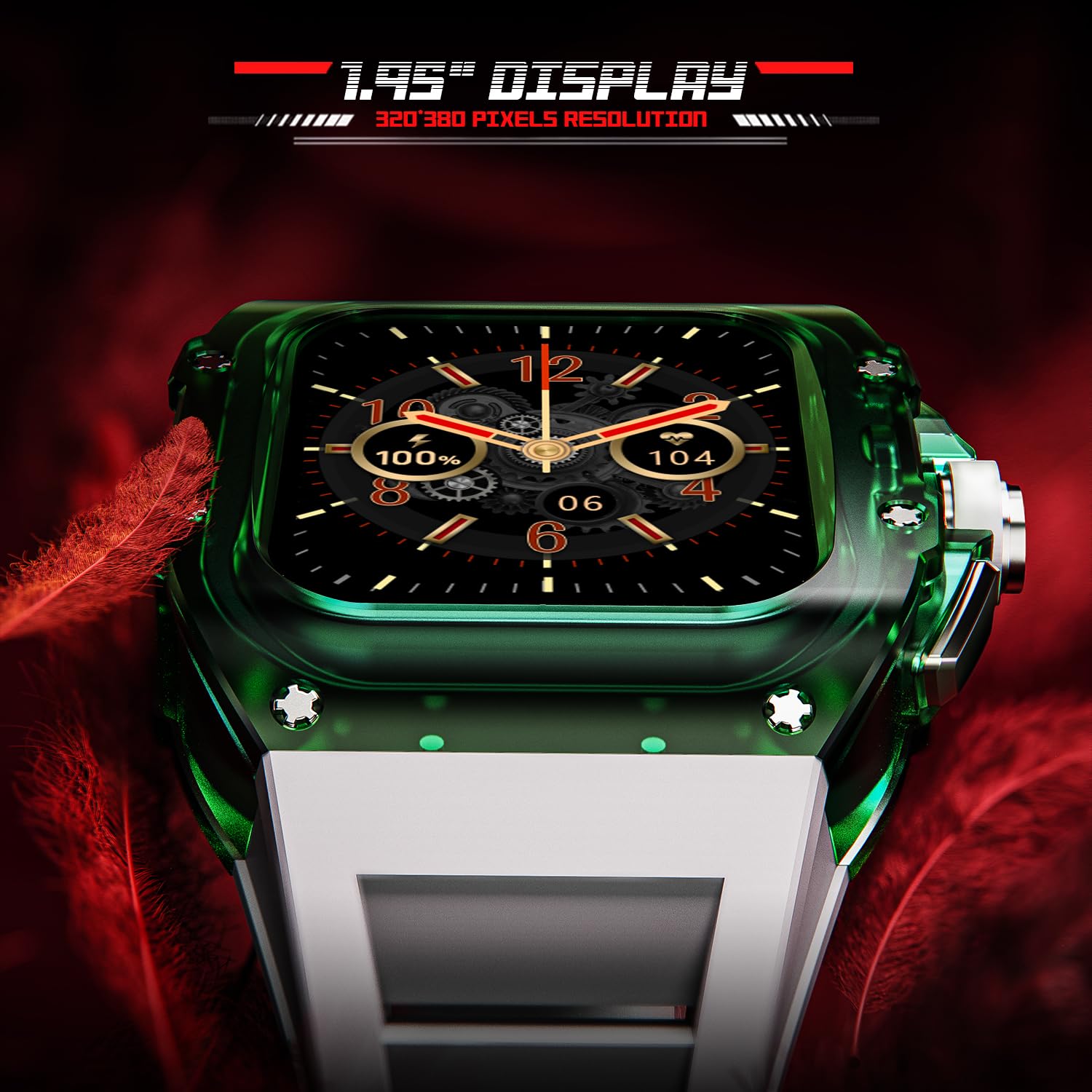 Special Feature Accelerometer, Activity Tracker, Alarm Clock, Calorie Tracker, Camera, Notifications, Pedometer, Phone Call, Sedentary Reminder, Sleep Monitor, Text message, Time Display, Spo2 (Blood Oxygen Monitoring), Heart Rate Tracking, Bluetooth Calling, IP68 Smartwatch, 1.95″ IPS Display, 320*385 Pixel High Resolution, Built In Mic & Speaker, Voice Assistant, Find Phone, Daily Workout Memory, Distance Tracker, Multisport Tracker, Music Player