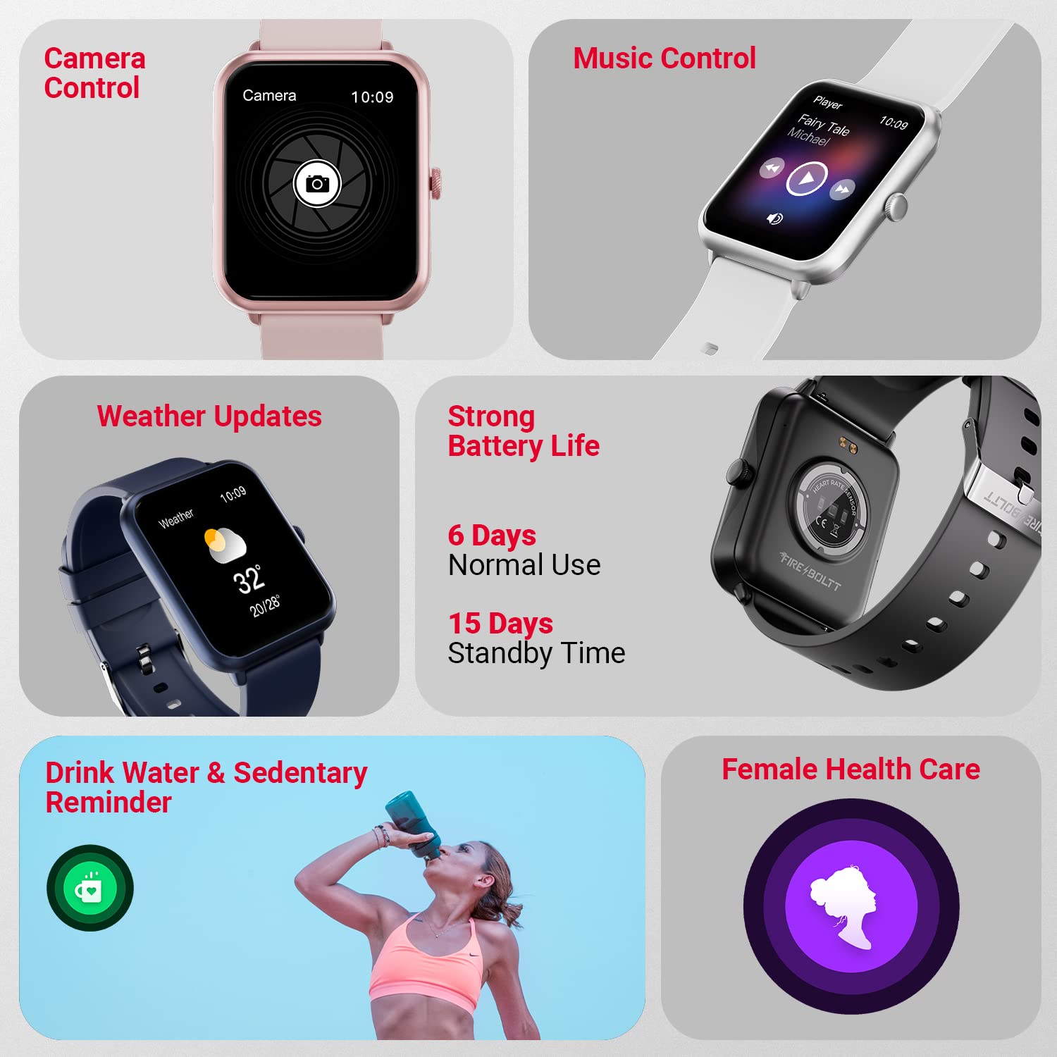 Special Feature Bluetooth Calling, IP67 Smartwatch, 1.83″ Big Display, Built In Mic & Speaker, Voice Assistant, Games, Find Phone, Accelerometer, Activity Tracker, Alarm Clock, Calorie Tracker, Camera, Notifications, Pedometer, Phone Call, Sedentary Reminder, Sleep Monitor, Text message, Time Display, Spo2 (Blood Oxygen Monitoring), Heart Rate Tracking, Daily Workout Memory, Distance Tracker, Multisport Tracker, Music Player