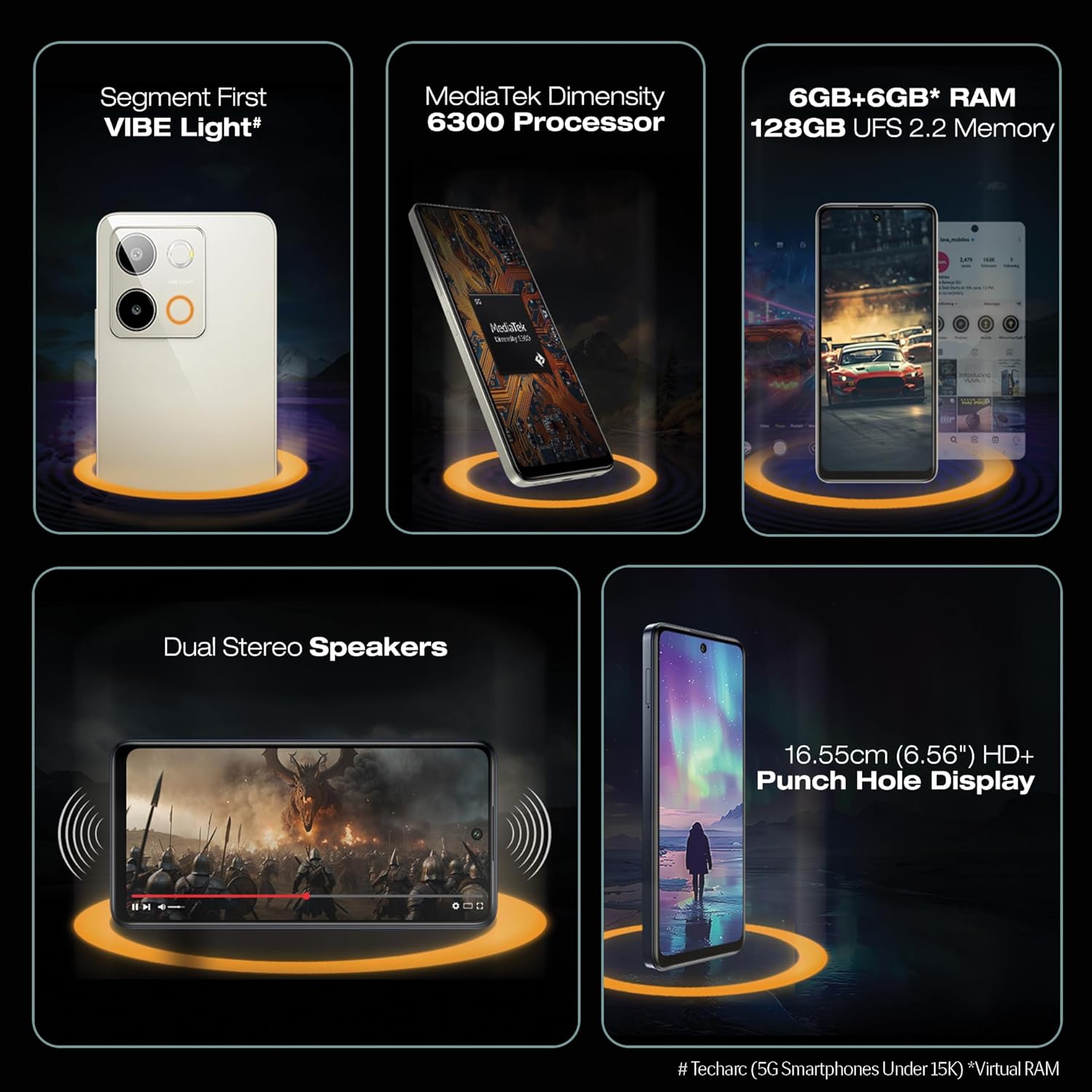 Capture breathtaking photos with a 50 MP rear camera, enhanced by a 2 MP AI lens and an 8 MP selfie camera. The innovative vibe light feature ensures perfect illumination for every shot, making every photo look professional and vibrant in any lighting condition.