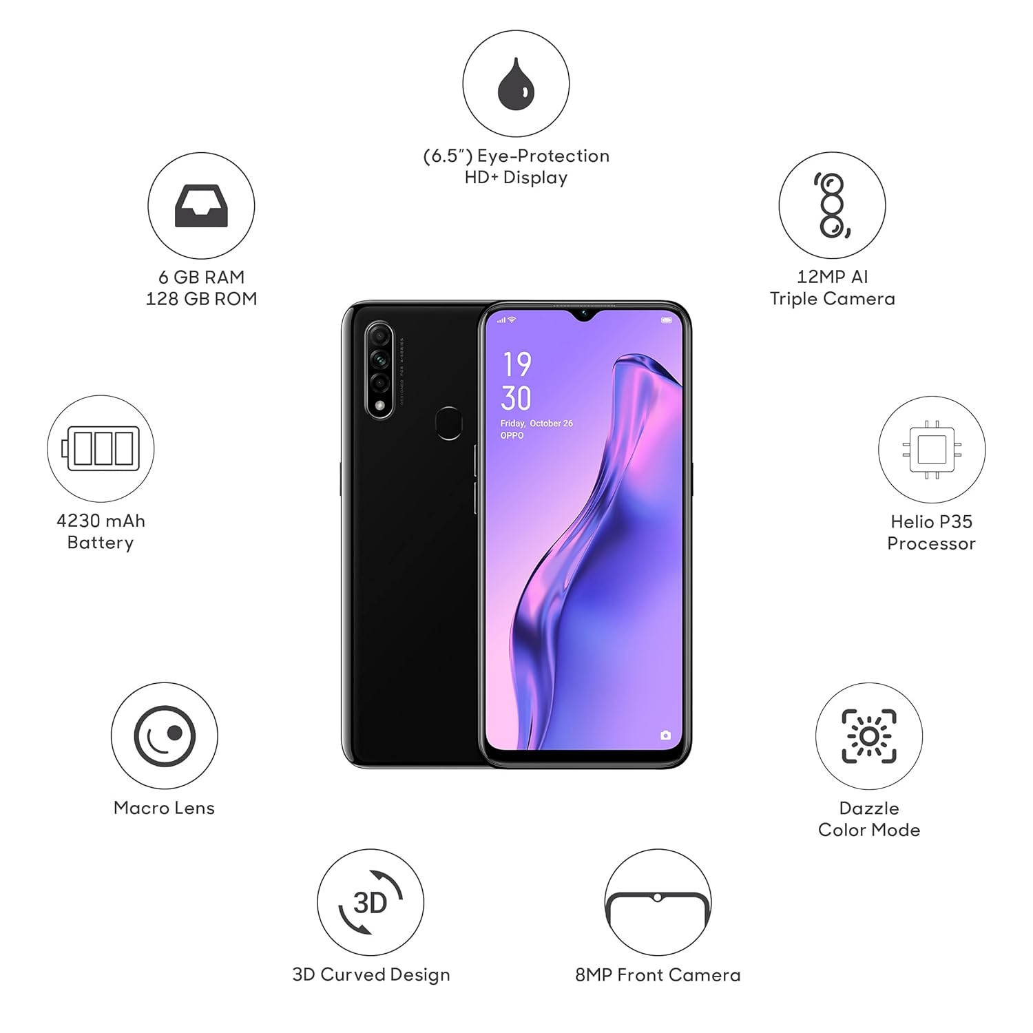 OPPO A31 (Mystery Black, 6GB RAM, 128GB Storage)